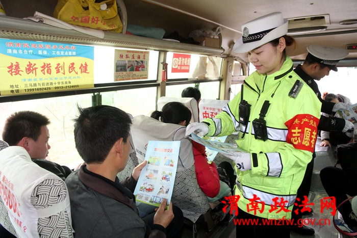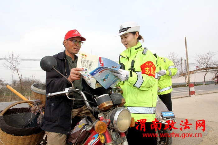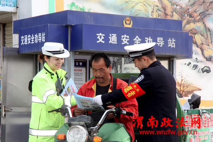 2017年3月28日,陕西省渭南市公安局交警支队临渭大队民警利用农村的交通安全劝导站,对进出村庄的车辆、行人进行安全劝导活动。