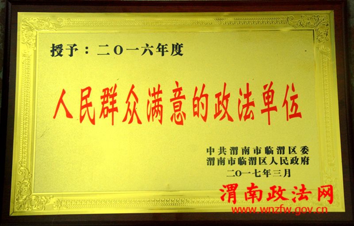 渭南政法网(临渭法院讯)在临渭区政法综治维稳工作暨“七五’普法动员大会上,临渭法院崇凝人民法庭和少年审判庭分别被中共渭南市临渭区委、渭南市临渭区人民政府授予“人民群众满意的政法单位”,执行局副局长耿伟、刑事审判庭副庭长殷旭力两名同志被授予“人民群众满意的政法干警”。