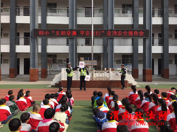 渭南政法网(临渭交警大队讯)为进一步增强小学生的交通安全意识,保障小学生的出行安全。4月6日,临渭交警大队闫村中队民警走进辖区韩马小学进行主题为“文明交通,平安出行”的生动有趣的交通安全报告会。
