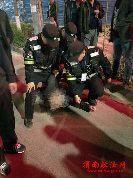 2017年4月6日晚22时30分,临渭分局巡特警大队一中队巡逻民警巡逻至三马路与西二路什字时,一群众现场报警称:新聚龙酒店门口有人打架。民警立即赶往现场进行处置,并用对讲机呼叫附近巡区民警进行支援。到现场后,民警发现一男子正对一老年人进行殴打,巡逻民警与及时赶来支援的民警一起将该男子成功制服。将该男子控制后,发现该男子满身酒气,情绪十分激动,说话语无伦次不停谩骂,应该是处于醉酒状态。随行民警立即用随身携带的医务包为老人面部的创伤进行简单的处理。民警对被打老人进行询问得知:老人吃过晚饭后独自一人散步至聚龙酒店门口时,突然从路边冲过来一男子对其进行殴打将其脸部打伤,老人与该男子根本就不认识也为跟该男子有任何语言上的冲突。随后巡逻民警将双方当事人移交杜桥派出所做进一步调查处理。