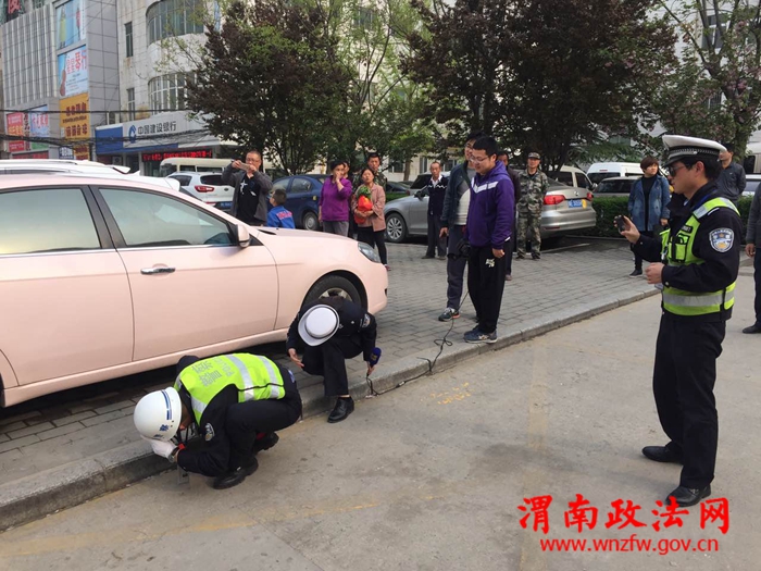 渭南政法网(特约通讯员 李菲) 遇群众求助,他们总能伸出援手。4月11日下午4时许,临渭交警大队三中队接到群众报警,说恒基商厦门前有一名市政施工人员被困井下,井盖上有一辆违停车辆,情形十分危急。
