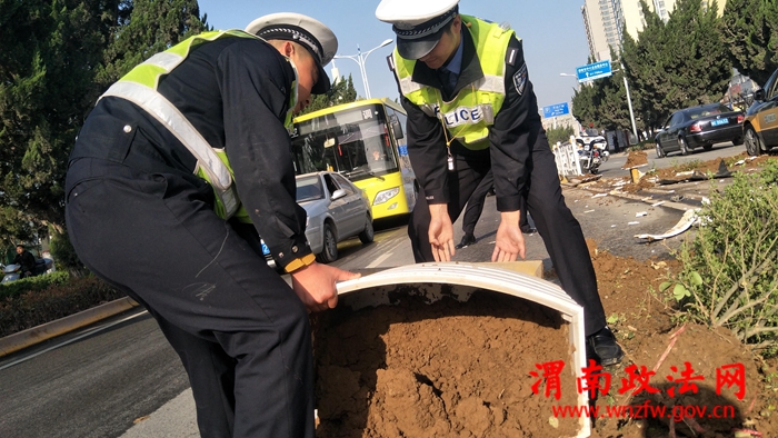 现场位于高新区东风大街,正值上班高峰期,过往车辆较多,由于护栏被撞倒在路上,一时阻碍了过往车辆正常通行,虽然事故才发生几分钟,但瞬间就造成了东风大街交通拥堵。高新交警事故预防处理中队民警到达现场后,对现场证据进行固定后,城区中队民警迅速清理道路障碍物,拖移事故车辆,疏导交通秩序,避免造成严重交通拥堵。