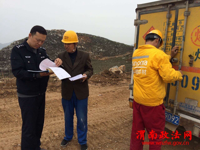渭南政法网(富平公安讯)为了着力解决涉枪涉爆突出问题,有力防范遏制涉枪涉爆犯罪活动,全力维护社会治安大局稳定,深入推进“平安富平”建设。按照市局统一部署,结合富平县涉爆企业实际,2017年4月12日-13日,富平县公安局治安大队针对涉爆企业开展突击监督检查,加强企业安全防范意识,扎实做好民爆物品安全监管工作。