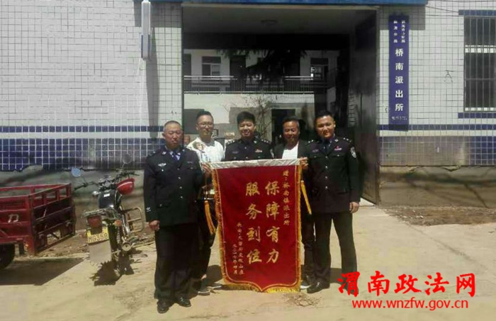 渭南政法网(临渭公安讯)4月17日上午,临渭区“航天生态园”天留郡项目部负责人亲手将印有“服务到位保障有力”锦旗送到临渭分局桥南派出所民警手里,项目负责人表示,施工进展顺利与公安部门的全力配合分不开,他们想借此表达感谢。