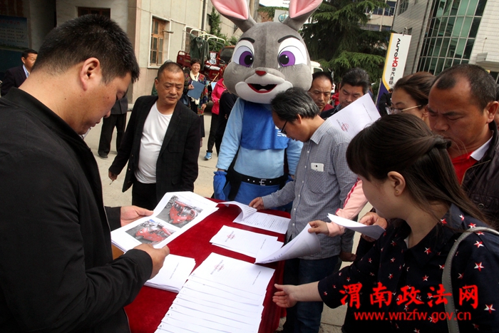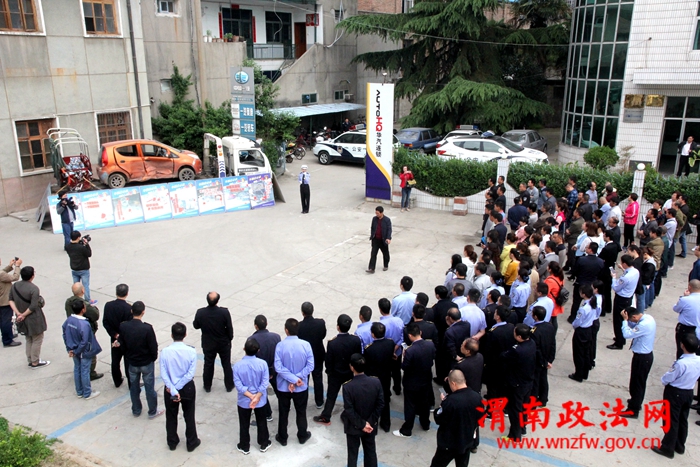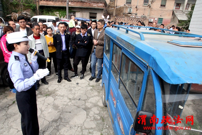 2017年4月19日,在一所停车场内,陕西省渭南市公安局交警支队临渭大队召开了公开处理及警示教育现场会,将近期集中整治查扣的百余辆电动三轮、四轮车向社会各界人士进行安全宣传,讲解了此类车的安全隐患,明确此类车辆为机动车管理,并需办理驾驶证在主城区以外才能驾驶。