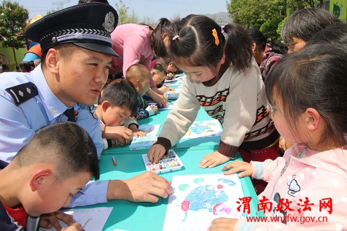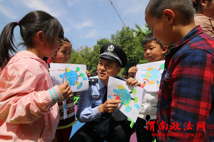 渭南政法网(特约通讯员 刘苍锋)4月21日,民警正在通过美丽的地球水彩画向小朋友普及爱护地球环境知识。