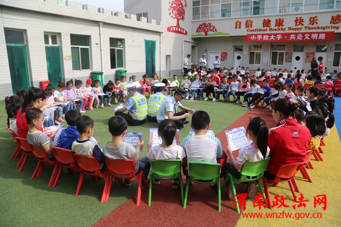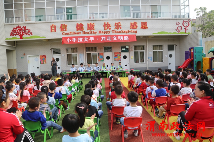 渭南政法网(特约通讯员汤妍妍)为进一步加强幼儿园小朋友的交通安全宣传教育,努力提高小朋友假期的交通安全意识和自我安全防范意识,遵守城管法律法规的自觉性与城市文明意识,潼关交警大队城区中队民警联合城管局执法人员深入辖区大风车幼儿园,以寓教于乐的方式开展“大手拉小手、共走文明路”宣传教育活动,确保“五一”期间平安出行。