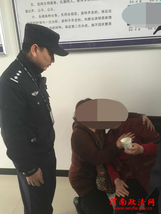 在派出所里,民警及时为老人头上的伤口消毒,并为老人递上热水和面包,详细询问,但老人也只能提供自己的名字,除此之外,没有任何线索。民警于是通过老人的名字进行查询比对,经过一个多小时的努力,最终确认了老人的身份,高某,77岁,西安灞桥人,民警立即与当地派出所取得联系,并最终联系上老人的西安阎良区的女儿康某。