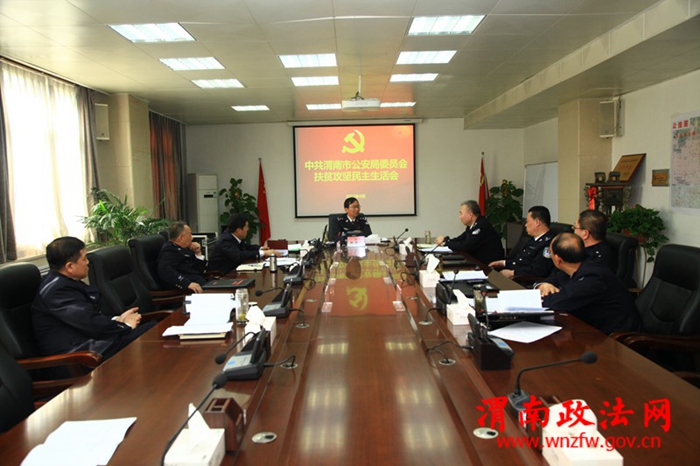 渭南政法网(市公安局讯)日前,渭南市公安局党委召开了扶贫攻坚专题的民主生活会。会议由副市长、党委书记、局长杨建琦主持。整个会议主题突出,剖析深刻,氛围浓厚。