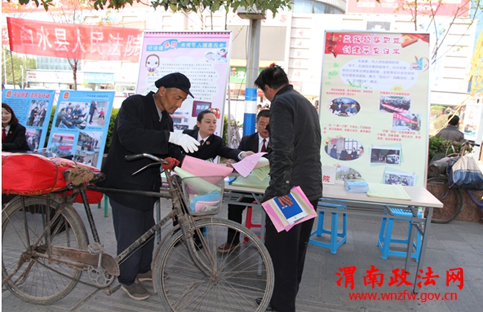 这次活动白水检察院集中宣传了相关法律法规和安全防范意识,重点宣传了我院近年来的品牌特色——对未成年人的帮教工作,包括“蓝丝带”爱心传递、一村一警、校园法治报告会等活动。共散发宣传单1000余份,法律咨询11人。