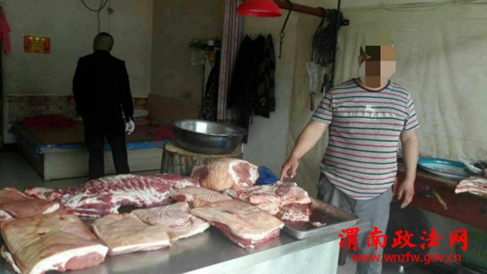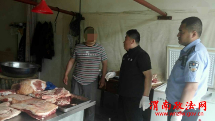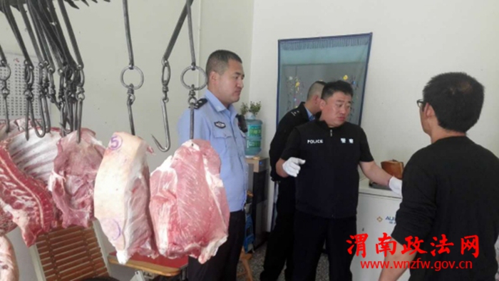 渭南政法网(澄城公安讯) “五一”节期间,为确保人民群众食品安全,澄城县公安局治安大队食药中队对全县食品安全进行地毯式大检查。在寺前镇检查时,发现寺前镇“军奇”大肉店党某经营未经检疫的猪肉,在市场上公开销售。食药中队发现此情况后,立即联合寺前派出所对其依法查处。