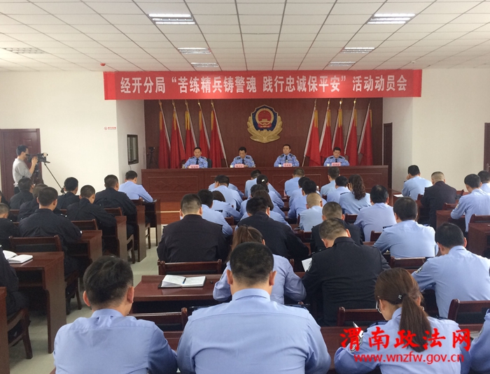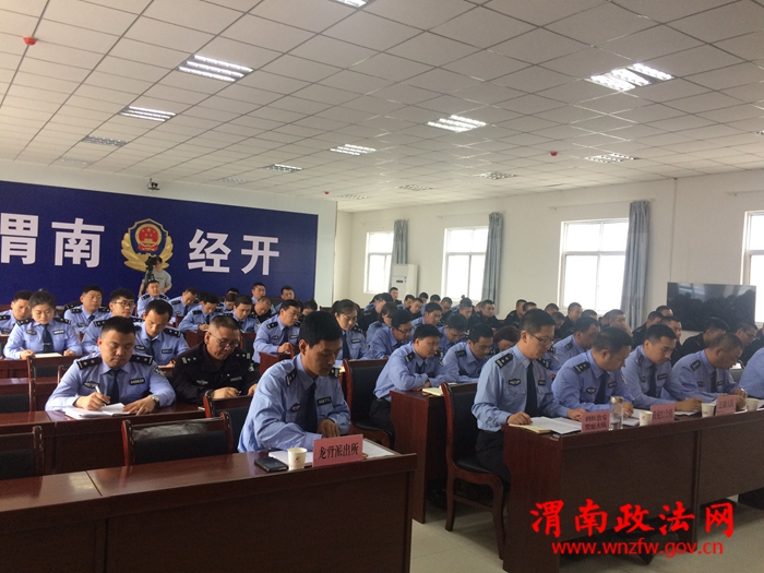 渭南政法网(特约通讯员 刘孟德 )5月3日下午,渭南公安经开分局召开全体民警会议,对开展2017年“苦练精兵铸警魂、践行忠诚保平安”活动进行动员部署,分局党委委员、副局长朱福利主持会议,党委副书记、政委党亚地宣读了活动《实施方案》,经开区党工委委员、分局党委书记、局长杨卫军作了动员讲话。