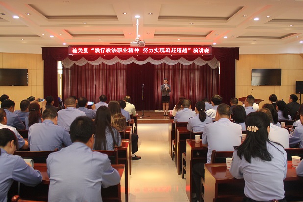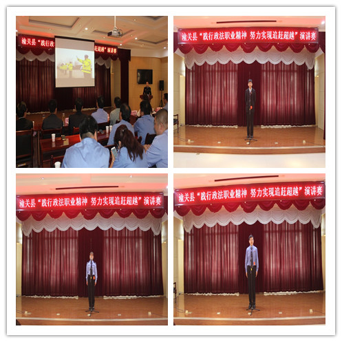 在五四青年节来临之际, 为激励青年干警继承和弘扬“五四精神”,牢固树立“忠诚、为民、公正、廉洁”政法核心价值观,展示政法干警良好的精神风貌,5月4日,我县隆重举行“践行政法职业精神努力实现追赶超越”演讲比赛。县委常委、政法委书记刘永利、县政协副主席、公安局局长姬刚民、县人民法院院长王俊峰、县公安局政委游小兵出席并全程观看了比赛,政法各部门中层以上领导干部及部分干警80余人观看了比赛。