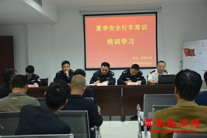 渭南政法网(特约通讯员 吴晓锐)为切实加强辖区道路交通事故预防工作,有效遏制重特大道路交通事故发生,减少人民群众生命财产损失,5月3日晚,高新交警大队深入渭运集团渭西、长运客运公司开展夏季交通安全宣传。会议由渭运集团渭西、长运公司车辆安全管理人张立功主持,副大队长刘全红、事故预防与处理中队长徐岗峰、交通秩序管理中队长姬治国、交通秩序管理中队民警吴晓锐参加此次会议。