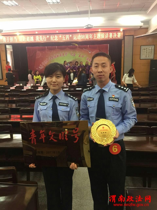 渭南政法网(特约通讯员张改文)5月4日,由中共华阴市委宣传部、中共华阴市委统战部、共青团华阴市委举办的“勇于担当,追赶超越,我先行”纪念“五四”运动98周年主题演讲活动在华阴市委七楼会议室隆重举行,市委宣传部长丁领战、统战部长鲍明侠、人大副主任崔丽芳等市上领导参加了会议。会上,华阴市公安局指挥中心、交警大队岳北中队分别荣获“青年文明号”称号,纪检监察室民警张一搏在演讲比赛中获“优秀奖”。他们是华阴公安战线最年轻的一代,朝气蓬勃,活力四射是他们的代名词,他们秉承“爱国、进步、民主、科学”的“五四”精神,勇于探索,勇于创新,爱岗敬业,拼搏进取,用青春和热血谱写出一曲曲动人之歌。