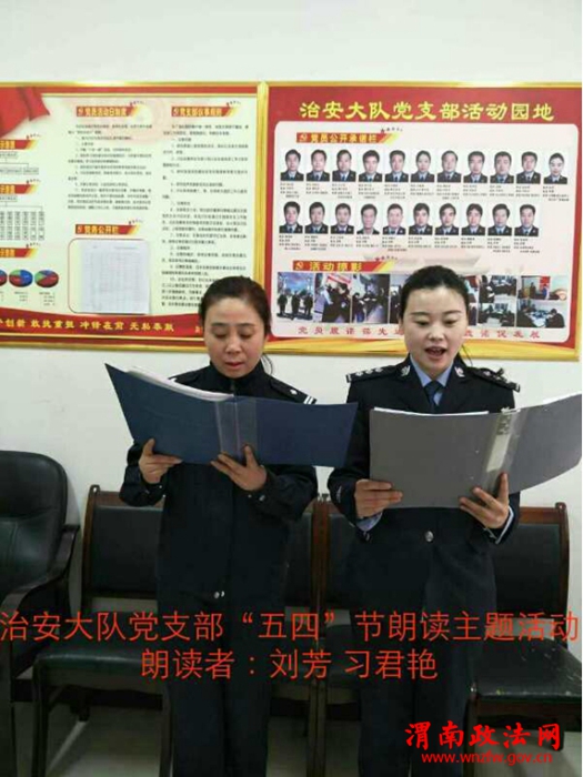 渭南政法网(澄城公安讯)5月4日,澄城县公安局治安大队党支部开展“不忘初心跟党走”五四青年节主题 活动和纪念中国共产主义青年团成立95周年。活动形式多样,内容新颖。办公室和基层基础中队朗读各自书写的歌颂党的散文、诗歌;民爆中队重温毛泽东诗词;行动队和环食药中队开展党的知识答题竞赛活动…