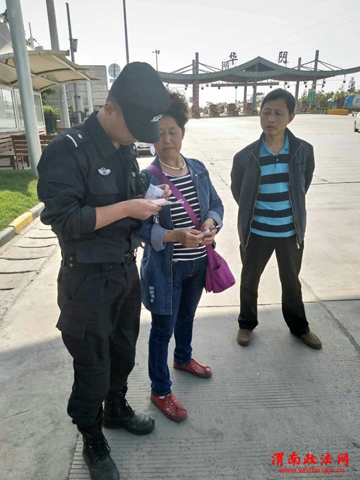 渭南政法网(特约通讯员刘帅)5月9日下午两点左右,正在高速路口执勤的华阴市公安局旅游警察大队民警接到两位聋哑老人的求助,两位聋哑老人由于沟通存在问题,错过了回山西的大巴车,无奈中,向正在高速路口执勤的旅游警察大队民警求助,希望能帮助他们坐上回山西的大巴车。