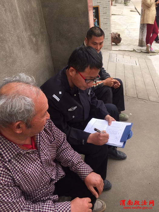 “2”即两手抓,两手都要硬。华阴市公安局要求各党员民警合理解决日常业务工作和脱贫攻坚的矛盾,按照局党委统一部署,坚持两手抓——一手抓好日常业务工作,一手抓好脱贫攻坚,同时要确保两项工作齐头并进,抓好抓硬。在逐户摸底阶段,对于白天没有走访到的群众,利用夜间休息时间逐一入户,了解群众家庭基本情况、住房结构及面积情况、贫困程度、家庭人员身体状况等,统一登记造册。在精准识别贫困户公示阶段,对于群众不理解、有异议的情况,民警耐心解释,详细记录意见,及时向驻村工作队反馈。