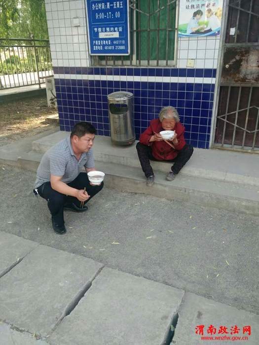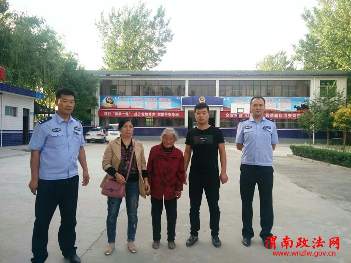 了解情况后,民警将老人接到派出所进行安抚。后经所长杨宝权和民警吴少锋对老人耐心的询问,得知老人姓魏,现年80多岁,系华县城关镇铁牛村铁炉巷人,杨所长当即联系华州区公安机关确定老人身份,最终联系到该老人的家属,家属立即驱车前来将老人接回,在等待老人家属时已到午饭时间,民警给老人盛来了稀饭和馍菜充饥,老人家属临走时对华西所民警的一再表示感谢!