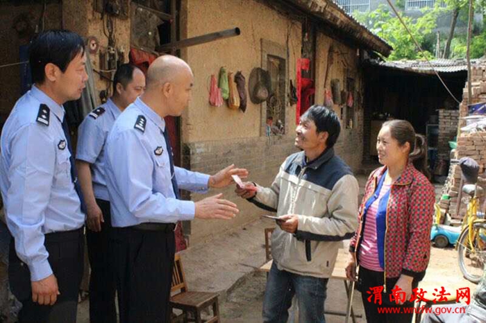 5月10日上午,副局长徐端利带领工作组一行先后为孟塬镇秦峪村朱传荣一家六口,孟塬镇沟里村精神病人张秀芳,罗夫镇夫北村五组邓长明、邓长利姐弟(其父母均为精神病人),华西镇南严村服刑人员的孩子刘波等四户疑难贫困无户口人员亲自送证上门,当徐局长把红红的户口本递到群众手中的时候,这几户群众紧紧的握着他的手,纷纷表示,这下看病、孩子上学、打工等问题就都解决了,并热情的邀请工作组一行人进家里喝杯水,在送证上门过程中,副局长徐端利与这四户人员促膝交谈,了解群众困难,关心群众冷暖,收集群众对华阴市公安局户政工作的意见与建议。