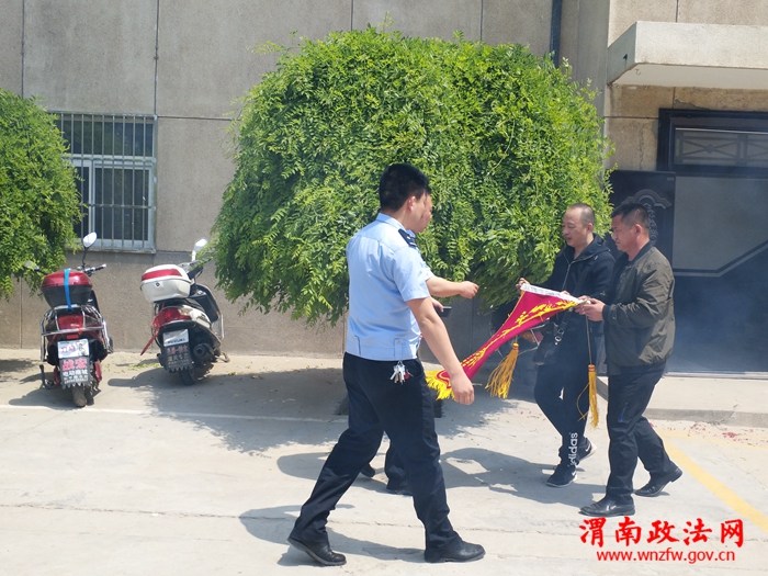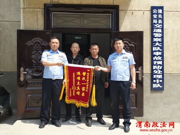 渭南政法网(特约通讯员任潇)5月8日早,潼关县交警大队事故中队收到山东省东营市道路交通事故死者家属王某某不远千里赠送的一面写有“警民一家亲,遇难见真情”的锦旗。