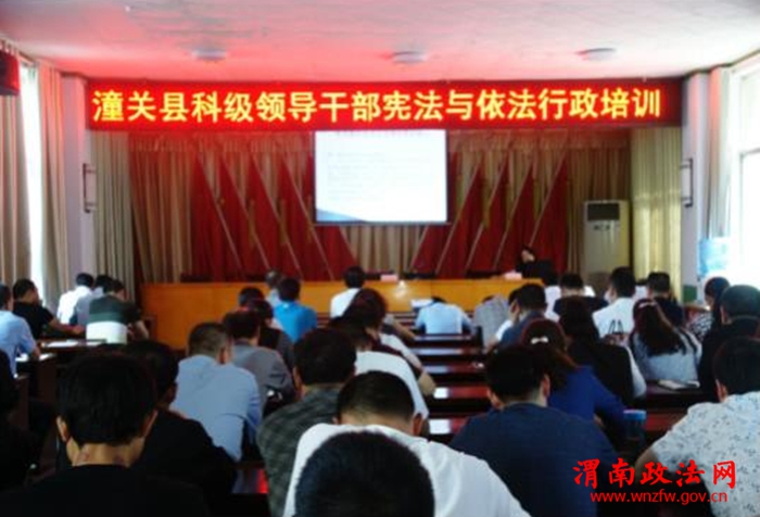 渭南政法网(潼关司法局讯)5月11日,县委依法治县办、县司法局在县委党校举办了科级领导干部宪法与依法行政专题培训班,培训班邀请渭南市市委党校安晓玲教授进行授课。各单位的主要领导参加了此次培训。