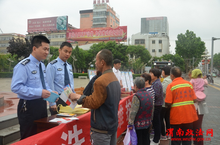 渭南政法网(特约通讯员 彭华荣)5月15日上午9时,华阴市公安局经侦大队在政府广场组织开展了"与民同心,为您守护"打及和防范经济犯罪主题活动。华阴市烟草局、华阴市工商局、中国农业银行华阴支行、中国人民银行华阴支行等单位联合参与。