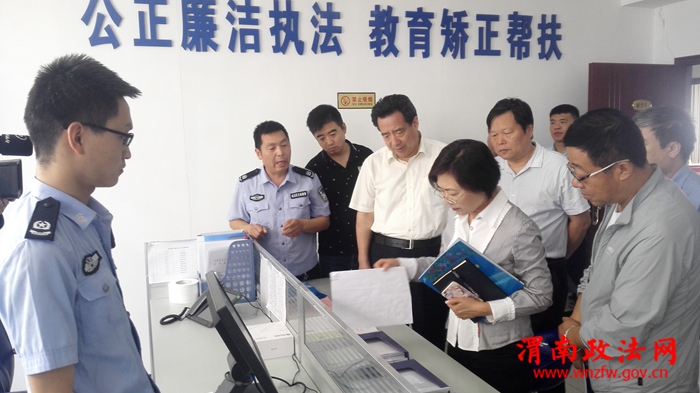 渭南政法网(特约通讯员 王涛)5月19日,省司法厅党组成员、副厅长马志强带领社区矫正处处长李瑞等一行三人来到白水县,检查验收社区矫正中心示范化创建工作。渭南市司法局党组书、局长李俊杰、副局长张鹏康,白水县党委、人大、政府相关领导,县司法局领导班子陪同检查。