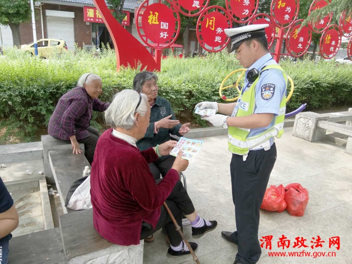 渭南政法网(特约通讯员夏阳) 5月20日,潼关县交警大队“治乱疏堵”工作正在如火如荼地进行,在火车站执勤疏导交通的潼洛中队民警在积极参与“治乱疏堵”的同时,不忘利用中途休息时间向火车站广场群众讲解交通安全常识,以进一步提升他们的交通安全意识。