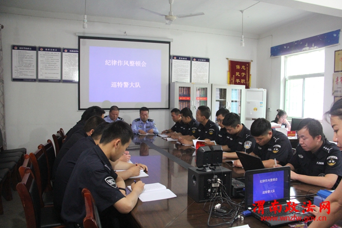 渭南政法网(特约通讯员 郎军杰)为进一步夯实队伍管理,切实加强纪律作风建设,改进工作作风,提高队伍战斗力,在应急处突、维稳安保任务中,树立公安巡特警的良好形象,2017年5月17日,富平县公安局巡特警大队组织全体党员民(辅)警召开了队伍作风纪律整顿会。