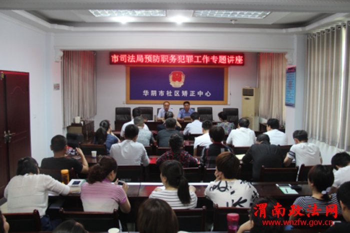 渭南政法网(特约通讯员 高妮)5月19日,为了增强司法行政系统干警忧患意识和危机意识,培育依法行政理念,切实推进华阴司法局职务犯罪预防工作,华阴市司法局组织全系统党员干部50余人,在公共法律服务中心召开了预防职务犯罪专题讲座。