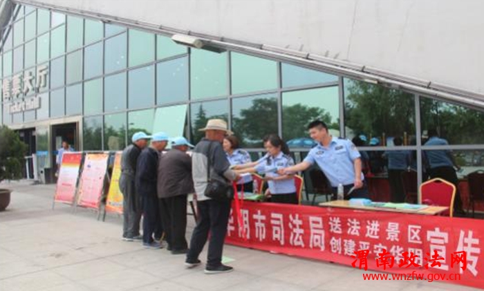 渭南政法网(特约通讯员 郭晓军)为深入贯彻落实“七五”普法规划,增强景区工作人员和广大游客的法治意识,5月22日上午,华阴市司法局、综治办普法人员走进华山游客中心,开展了送法进景区宣传活动。