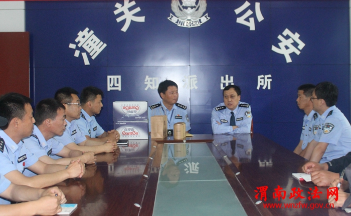 在四知派出所,姬局长依次参观了该所自建的蔬菜园、运动场、健身房、党员活动室等,了解日常工作开展情况。在会议室,姬局长代表局党委向该所发放慰问金及慰问品,并组织全体民警召开座谈会。会上,姬局长对该所自成立以来,认真细致、攻坚克难的工作作风和团结一致、敢于争先的班子作风提出表扬,特别是在此次“5.20”专案中,从报案到抓获嫌疑人仅用12小时,反映出该所自上而下的敬业精神,体现出整体工作的系统化,日常工作的全面化,是实实在在的标杆所队。最后,姬局长指出:四知派出所是我县维护治安稳定的主要战区,因涉及拆迁项目,群体事件多、现发案件多,肩负重任,因此要更加努力,进一步打造标杆所队,争取持续走在派出所的前列、走在一线实战单位的前列。