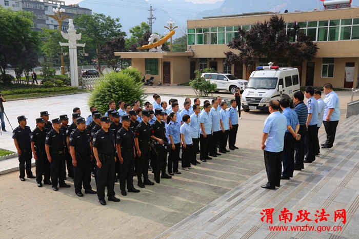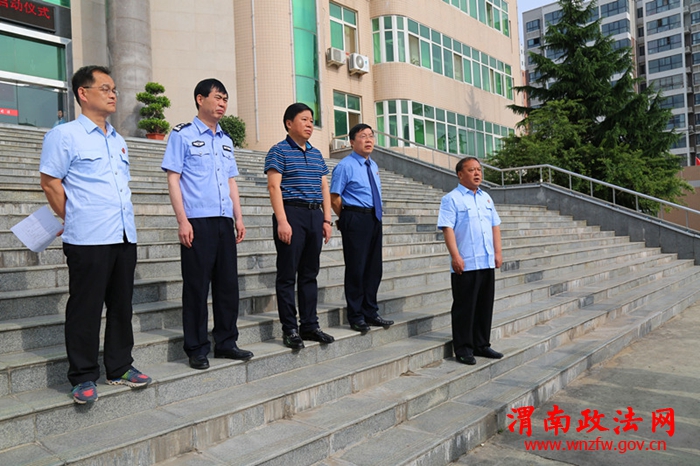 5月24日,华阴法院又在市检察院、公安局的大力支持和配合下,抽调十名巡警,再次开展“夏日突击,闪电行动”专项活动。市委政法委书记、市检察院检察长、市公安局局长共同参加专项活动启动仪式。