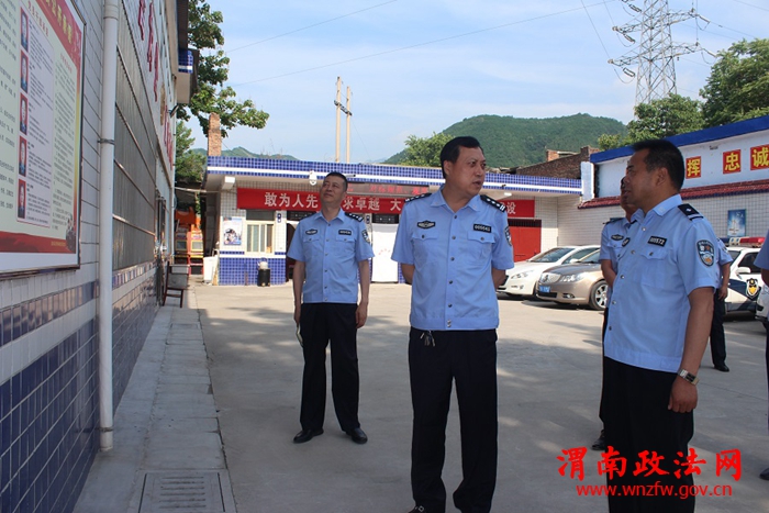 在桐峪派出所,全所民警在院内集合列队欢迎姬刚民局长一行,警容严整、警风昂扬。在所长索志武的陪同下,姬刚民一行参观了厨房、食堂、民警宿舍、办公区、党建活动室等,查看了党建工作记录本、党员个人学习心得等资料,对该所健全的基础建设、严明的纪律作风和民警斗志昂扬的精神风貌给予了高度肯定。
