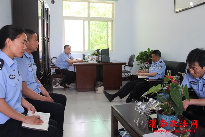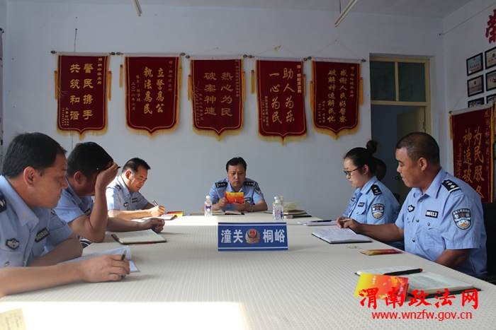 最后,姬刚民局长作了总结讲话:桐峪派出所地处陕豫交界,治安状况复杂,辖区内包含社区、村组及矿区,工作任务重、责任重,该所在索志武同志的带领下,队伍团结一致、凝心聚力,各项工作持续走在全局前列,民警精神面貌、工作状态都呈现良好势头,希望继续保持、稳扎稳打,全力打造“二级”派出所。同时,他对该所下一步工作提出了几点要求,一是党建工作方面,要每日1小时学习,每周三1次党课,每名民警建学习档案,把党建工作常态化;二是打击方面,现发刑事案件要及时侦破,对吸贩毒人员的管控、打击力度要加强,对矿区因资源引发的群体性事件要做到早发现、早化解;三是禁毒工作宣传方面,灵活宣传方式,与镇政府、村组联合开展宣传活动,制作小册子、彩页发放给群众;四是队伍建设方面,全所民警要拧成一股绳,发扬艰苦奋斗、奉献敬业的精神,在索志武同志的带领下,打造一支团结、战斗的队伍。