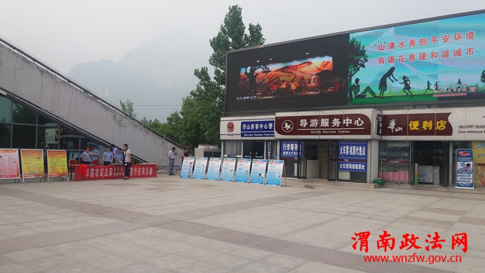 为进一步扩大渭南市反邪法制宣传效应,深入贯彻落实“七五”普法规划,强化景区工作人员及广大登山游客的法治知识及防邪意识,5月22日上午,华阴市委防范邪教办以“平安建设进景区”活动为契机,联合司法部门走进华山游客中心为广大登山游客们开展了送法治知识、反邪教育宣传活动。