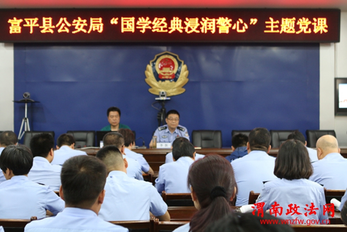 渭南政法网(特约通讯员 张剑)为了进一步夯实政治理论学习效果,深入推动“两学一做”学习教育制度化、常态化和作风建设年主题活动,5月24日上午,富平县公安局举办“国学经典浸润警心”主题党课活动,局党委班子成员、机关全体中层及部分党员70余人参加了学习。