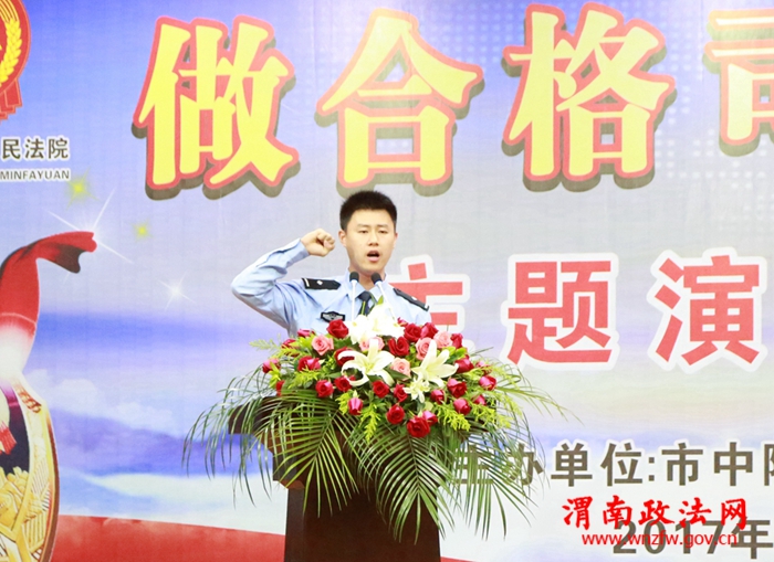 渭南政法网(特约通讯员 朱小龙 贺康乐)为深入推进“两学一做”学习教育的常态化、制度化,按照院“三创三增”和“作风建设年”活动方案要求,5月26日下午,全市法院“做合格司法警察”主题演讲比赛决赛在渭南中院二楼会议室举行。渭南中院法警支队、各基层法院法警大队100余名司法警察在比赛现场为选手们加油助威。渭南中院党组成员、副院长傅桥舟为比赛致辞并预祝比赛取得圆满成功。