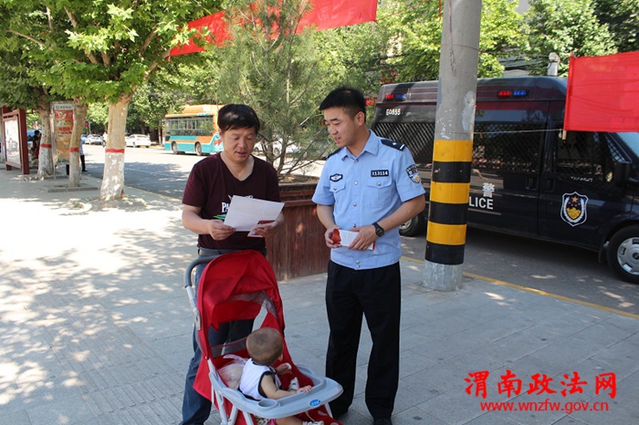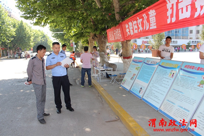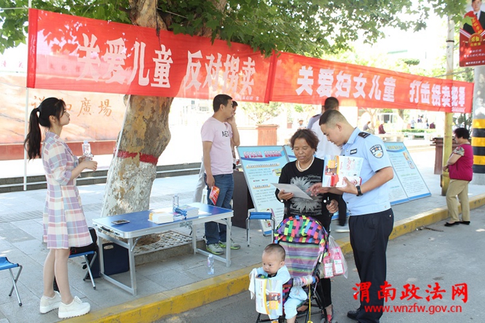 渭南政法网(潼关公安讯)按照市打拐办要求,为切实做好反拐宣传教育工作,预防、减少和打击拐卖儿童违法犯罪活动,更好的保护儿童合法权益。5月27日,潼关县公安局打拐办以反拐联席会议办公室名义,会同妇联、妇儿工委办、民政等单位,在潼关县祥和广场开展了防拐、打拐宣传活动,践行了党的群众路线教育实践活动的总体要求。