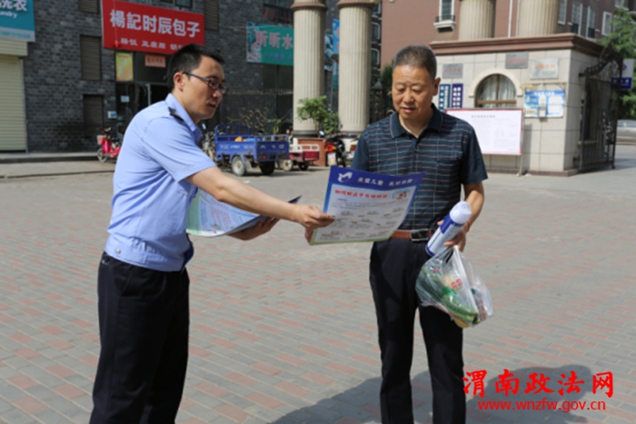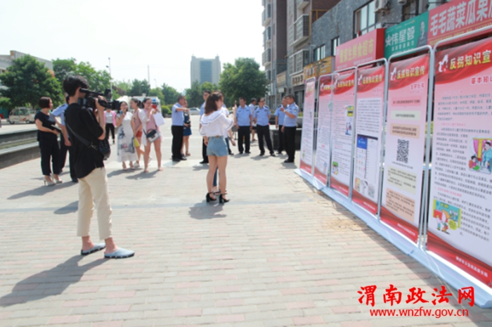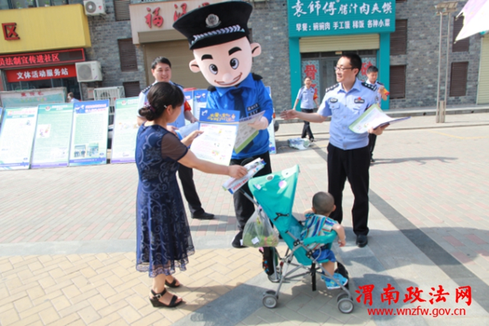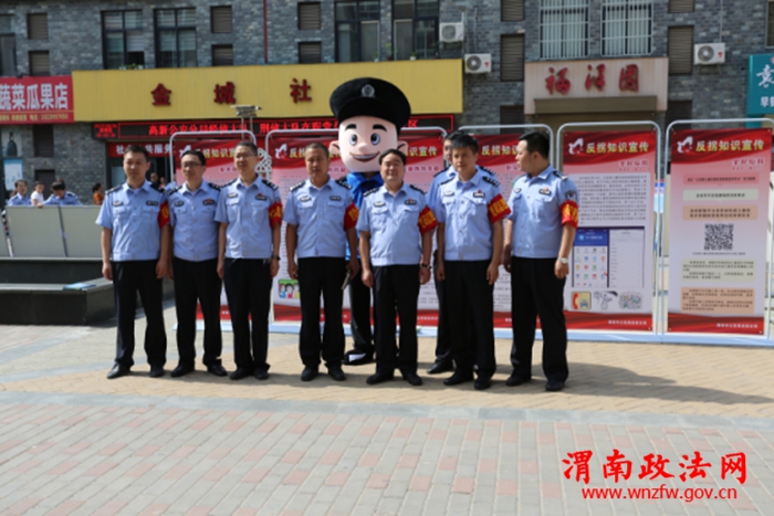 渭南政法网(高新分局讯)为贯彻落实省厅、市局关于开展打拐宣传活动的要求,进一步提高广大家长的反拐意识,六一儿童节当天,高新分局刑侦大队精心组织,周密安排,在辖区金城社区举行反拐宣传活动。6月1日上午,分局刑侦大队组织专门人员,在金城社区门前设立宣传站,采取悬挂横幅、发放宣传单、架设宣传展板等形式,多层次、全方位开展“关爱儿童·反对拐卖”专题宣传活动。渭南市公安局刑侦支队一大队大队长雷江涛、高新分局副局长王伟峰、刑侦大队大队长马宏运参加了此次宣传活动。