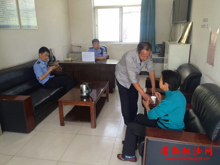 到西岳派出所后,民警一方面端来热水和食物为老人充饥,一方面耐心询问老人身份信息。通过近半小时的交流,民警从老人的只言片语中得到老人叫张西养,家住渭南市临渭区。民警随即通过户籍网查询、人像对比,确定老人的身份信息。随后民警通过老人户籍所在地渭南市临渭区崇凝派出所联系到了老人的家人。原来其老伴在华阴一处工地打工。大约半小时后,老人的老伴来到西岳派出所见到老人连忙对民警表示感谢。据其老伴讲,他在华阴的工地打工,谁知老伴一个人从渭南来到华阴,自己却不知道,而且还患有脑萎缩、间接性精神病,幸好有你们民警的帮助,你们真的是好人。临走时,老人还不停的对民警表示感谢。