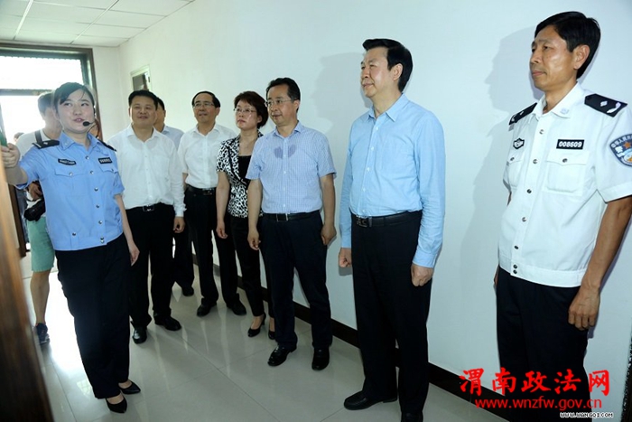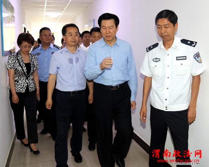 渭南政法网(市公安局讯)日前,陕西省委常委、宣传部部长庄长兴、渭南市委书记陆治原、市委常委、宣传部部长王玉娥在市委秘书长杨林、宣传部副部长杨建秦、临渭区区委书记郭柱国、区长刘宝琳、交警支队支队长闫丰胜等领导的陪同下,一行十余人莅临临渭交警大队视察核心价值观建设和学雷锋活动开展情况。支队副政委、大队长张军带领大队党委班子成员陪同。