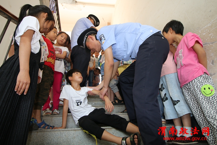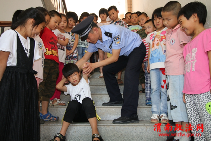 渭南政法网(特约通讯员 刘苍锋)6月12日,民警正在通过踩踏疏散演练向学生传授摔倒在地后自我防范保护技能。