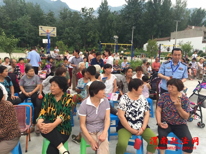 渭南政法网(特约通讯员 李斌)为加大综治和平安建设的宣传力度,进一步了解社情民意,提升人民群众的安全感和满意率,6月14日晚,华阴市公安局桃下派出所民警借着华山镇政府、罗夫镇政府分别在桃下派出所辖区宁城村和竹峪村举行“平安建设宣传暨脱贫攻坚文艺汇演”活动的时机,对观看演出的群众发放平安建设宣传手册、宣传画等资料,开展平安建设宣传活动。