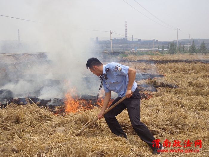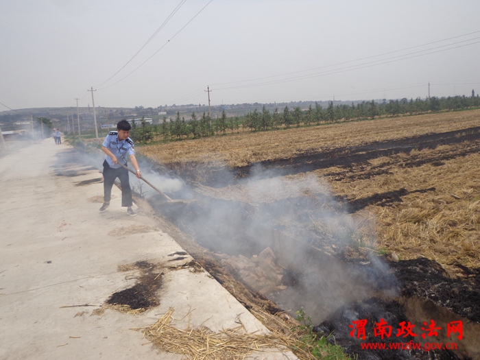 渭南政法网(特约通讯员 胡一瑛)6月15日,渭南富平梅家坪派出所民警在出警回所的途中,发现梅家坪镇庙沟村一生产路上浓烟滚滚,民警立即前往事发地点,发现地理的刚收完麦子的麦茬着火了,火势比较大,周围也无一人,不知道起火的原因是啥,民警立即联系村书记派村上的水罐车前来灭火。