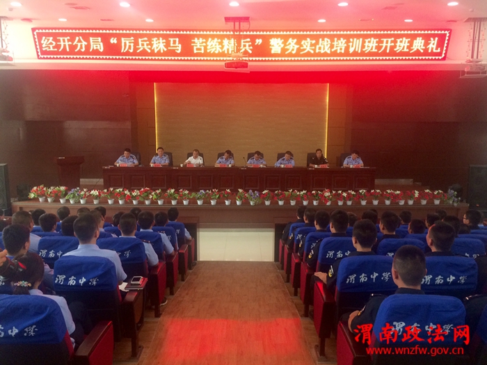渭南政法网(特约通讯员 刘孟德) 6月19日,渭南公安经开分局拉开警务实战封闭式培训开了序幕,经开区党工委委员、分局局长杨卫军、市公安局警训处处长辛晓刚、市局警校孟新伟、渭南中学祁永全、分局班子成员出席了会议。