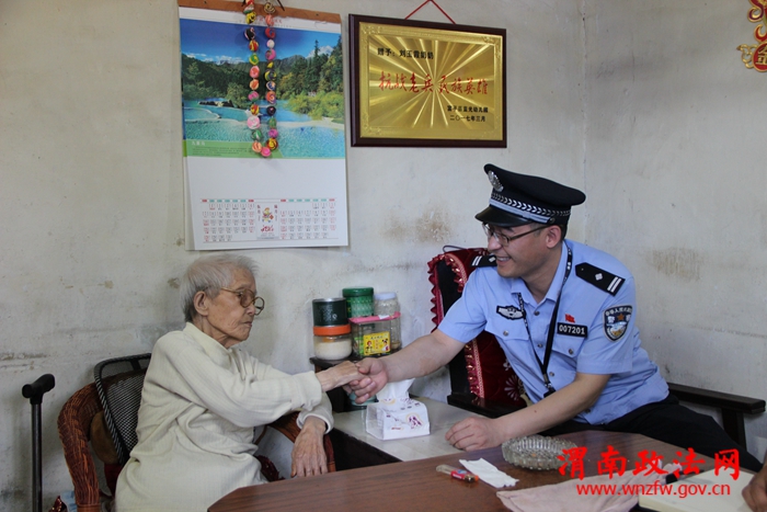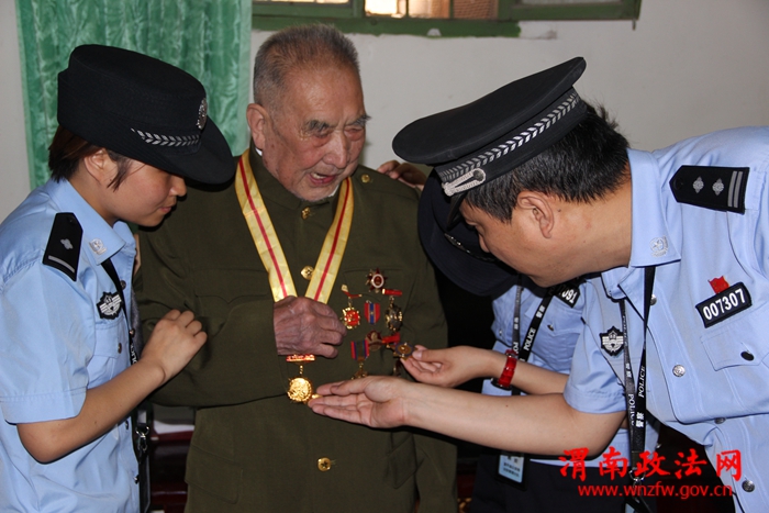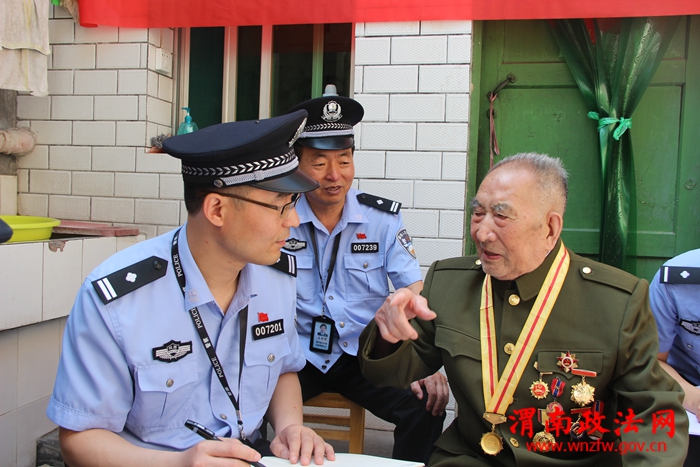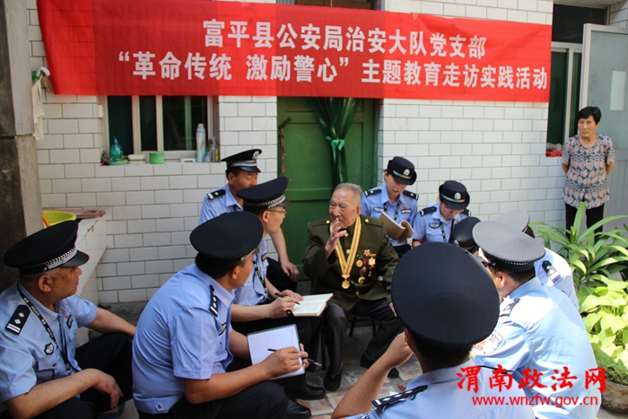 渭南政法网(富平公安讯)为了扎实推进“作风建设年”、“苦练精兵铸警魂、践行忠诚保平安”活动深入开展,6月20日,富平县公安局治安大队党支部组织党员民警开展“革命传统、激励警心”主题教育走访实践活动,先后走访了88岁的抗战老兵高登科、98岁的老八路军革命战士刘玉霞。