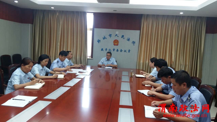 接着,孙向贤书记以“深入贯彻习近平总书记关于‘两学一做’教育的重要指示”为标题继续给大家讲党课。他重点带领大家重温了“两学一做”教育中敢于担当精神的深意。他讲到:目前,我市“五城联创”工作正处于关键时期,适逢天气炎热,使得创卫工作在责任重大的同时,又增添了些许繁重。这时,我院法警大队在党小平队长和焦自强政委的带领下,勇挑重担,承担了我院巍山路的创卫任务。20天以来,法警大队每日安排四名干警全天在巍山路值勤,确保了我院创卫任务的顺利推进!孙向贤指出:法警大队的如此敢于担当精神应该予以充分肯定,是全体党员学习的榜样!