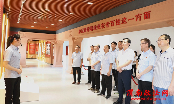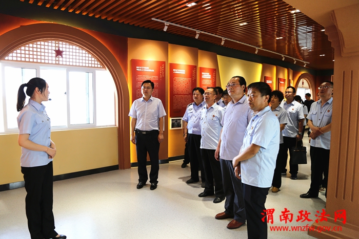 潼关法院王俊峰院长(左二)一行参观富平法院传承人民司法优良传统教育室